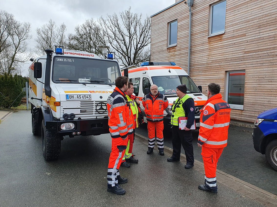 Am Montag, 21. Februar, wurde vom diensthabenden OrgL Rettungsdienst ein Allradfahrzeug beim ASB Ostholstein angefragt. Am Nachmittag des gleichen Tages hat sich unser Unimog mit unseren Rettungsdienst-Kollegen Heiko Zachriat und Torben Hamer, die sich ehrenamtlich zur Verfügung gestellt haben sowie unserem ehrenamtlichen SEG-Leiter Michael Mohr auf den Weg nach Niendorf gemacht, um dort den Rettungsdienst in den überschwemmten Gebieten zu unterstützen. Untergebracht wurden die Retter in der Niendorfer DLRG-Station, die als Behelfswache diente.