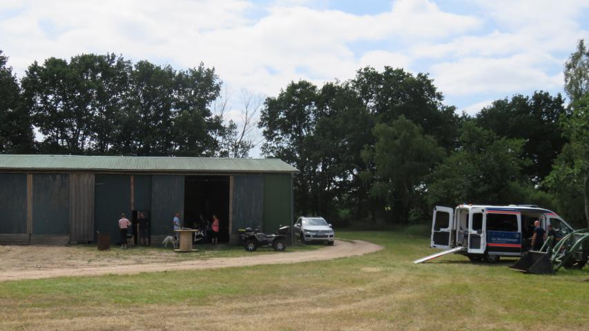 Dann wollte Herr P. noch einmal den See auf seinem 74 Hektar großen Grund einen Besuch abstatten. Sein Sohn hatte extra einen Weg in die Wiese gemäht, damit der Wünschewagen direkt ans Wasser fahren konnte. Nicht ganz leicht mit so einem großen Wagen, eine abschüssige Strecke zu befahren, aber zum Glück waren ja Profis am Steuer!